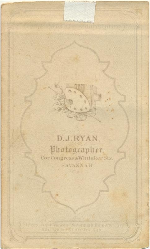 Very rare hard to find CDV taken in April 1870 by Savannah photographer D.J. Ryan. General Lee had traveled South with his daughter Agnes for rest and warm weather due to his deteriorating health. All along the route South from Richmond the train was met by adoring crowds showing enormous affection for the General. While in Savannah Lee met with Johnston who was working in Savannah in the insurance business and whom he had not seen since the Civil War. Both Lee and Johnson were 63 years old when they were photographed by D. J. Ryan in Savannah. The 1870 census list David J. Ryan as born in Ireland and 33 years old working as a photographer. There are 2 variations, one with an inkwell on the desk and this one with what appears to be a book. Copies of the photo were later sold to aid the Ladies' Memorial of Savannah to raise funds for a monument. Later General Lee and his daughter traveled south to Cumberland Island near St. Marys Georgia to view the grave of his father Light Horse Harry Lee who was buried there. Sadly, Robert E. Lee would pass away 6 months later on October 12, 1870. Joseph E. Johnson would live until his passing in March 1891. Clear image with a crease that runs across the very top of the photo. also there is a small piece of archival tape on the back where it was mounted in an oval wall frame.