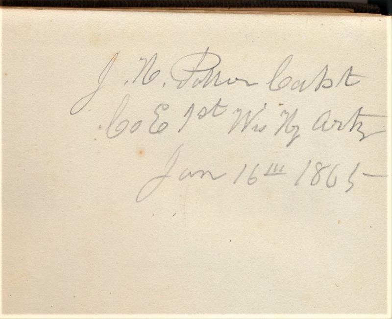 Heavy Artillery manual identified to Captain Justus Hull Potter 1st Wisconsin heavy artillery. 261 pages printed in 1863. Clean tight copy faded on the front fly.
