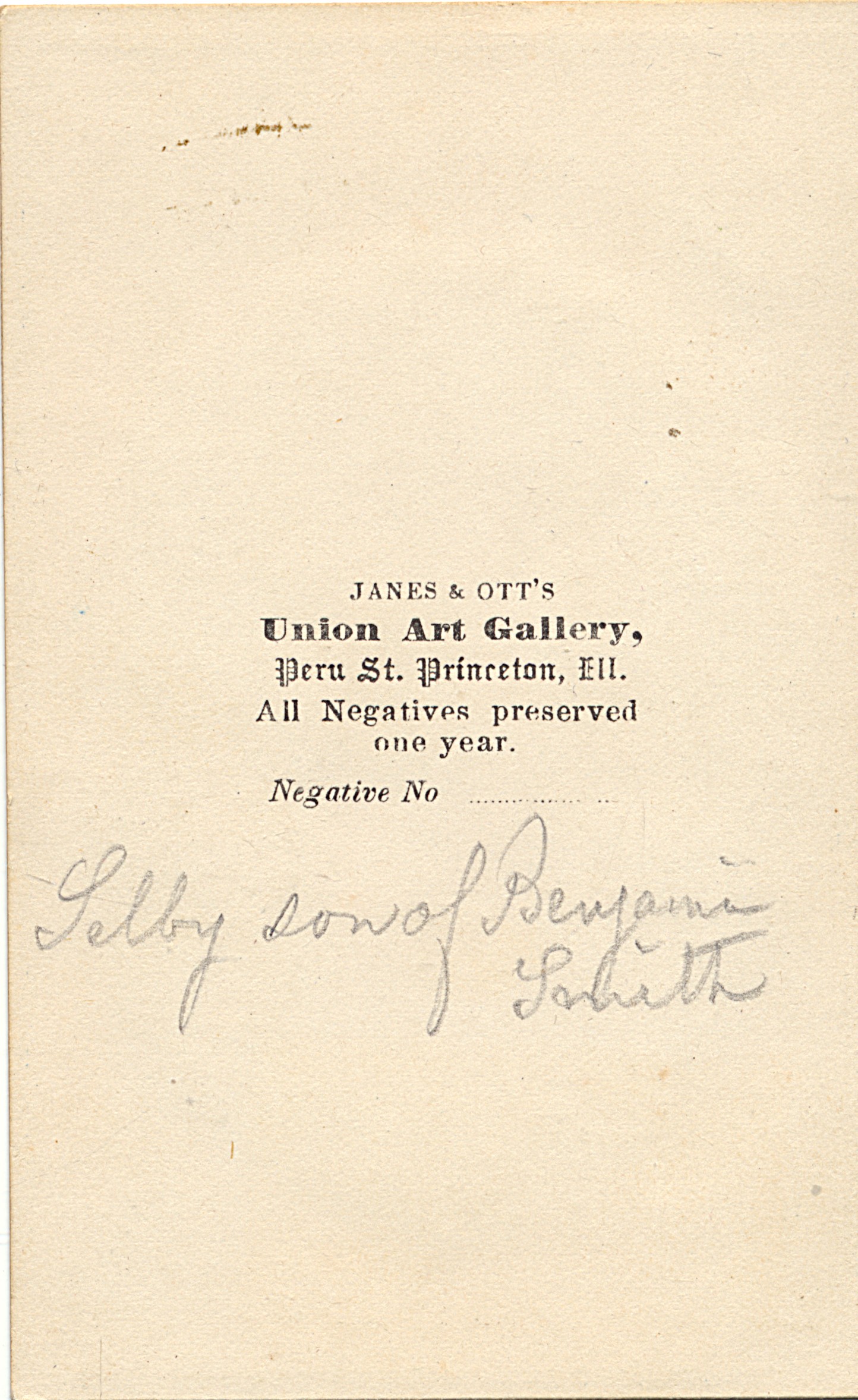 Identified on the back as Selby L. Smith. My research indicates that Selby Smith was born in 1847 and lived in Princeton, Illinois.