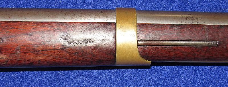 Very fine condition Remington Mississippi Rifle altered by Frederick H. Grosz to accept a socket bayonet for the State of New York. In early 1861, the State of New York acquired 5000 Remington-manufactured Mississippi Rifles from the federal government. The state initially contracted with E. Remington and Sons to alter them to accept a Collins saber bayonet. Remington was only able to complete approximately 3400 of the alterations. The remaining 1600 rifles were sent to Frederick H. Grosz of New York City to be altered to accept the model 1842 socket bayonet. Grosz performed the alteration by turning down approximately 3 inches off the muzzle of the barrel to accept the socket bayonet. Then a bayonet lug was brazed on the bottom of the barrel, and the front sight was moved back about 3 inches. The bore was not bored out to .58 caliber and remains in the original .54 caliber.